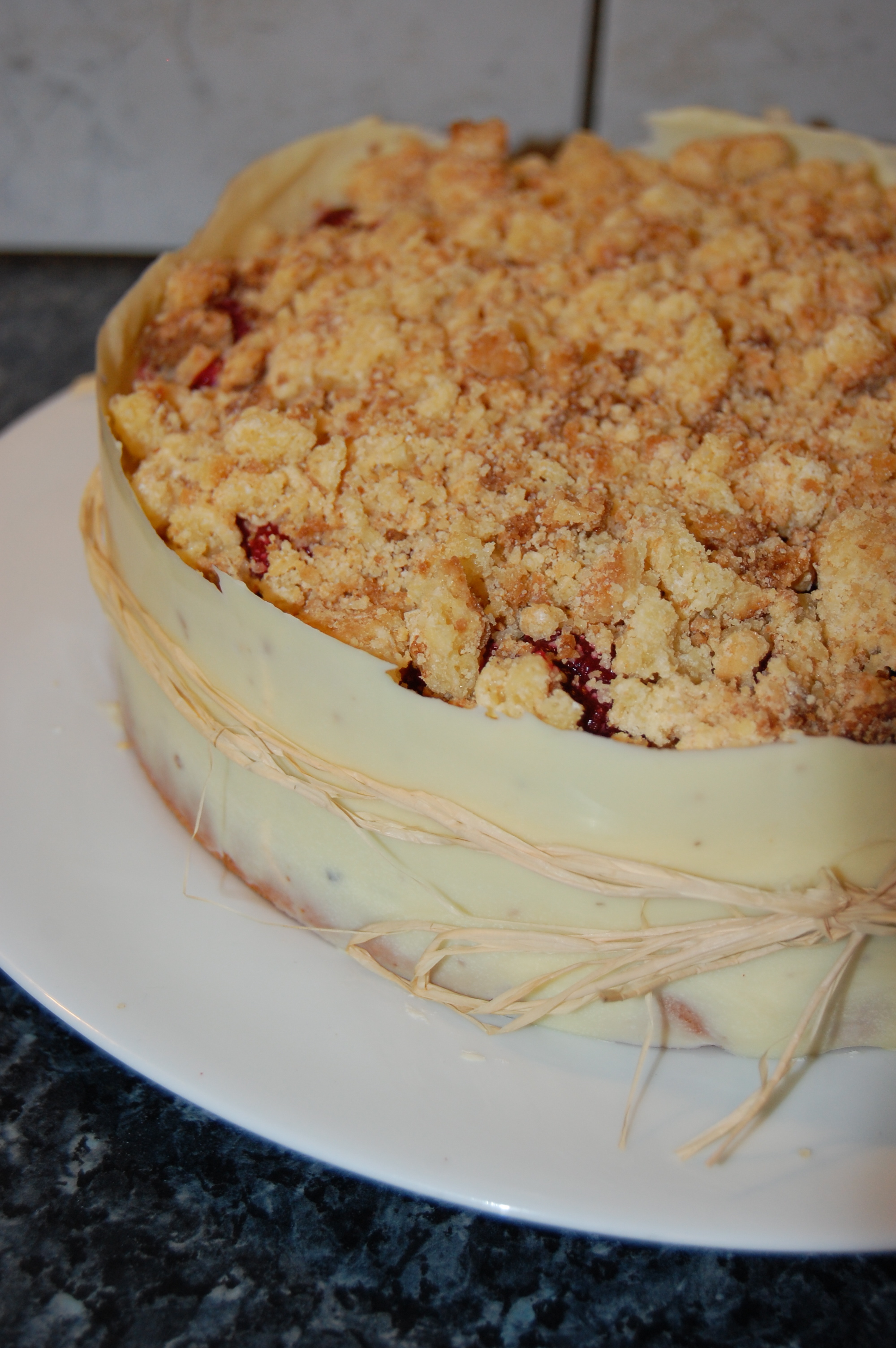 Il est composé d’une génoise nature, d’une couche de mousse vanille-coco, d’une couche de fruits (ici la framboise) et pour finir d’un petit crumble revisité.