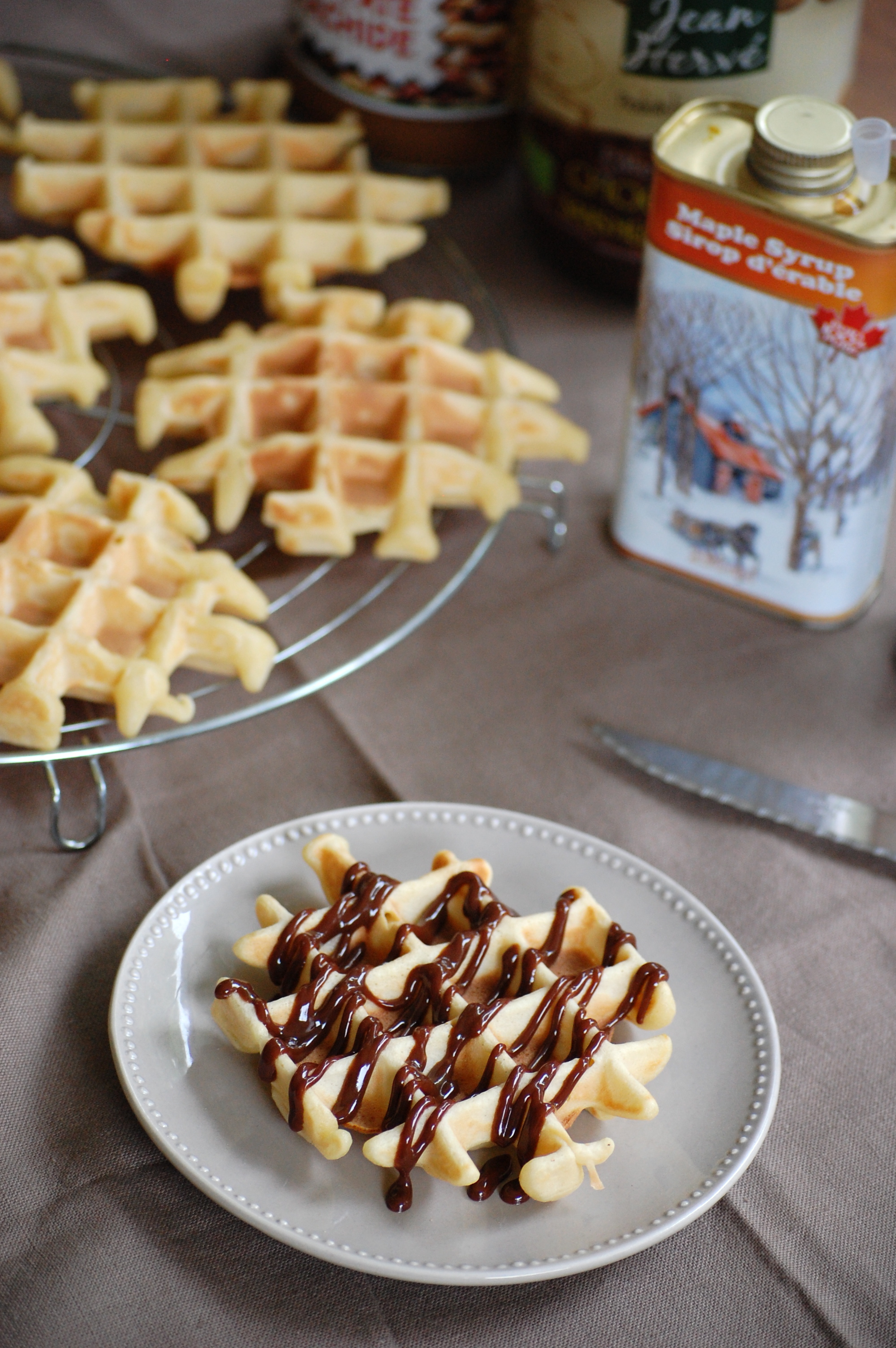 DSC_0462Tout à l’heure, j’avais une grande envie de pâtisserie. J’étais partie pour préparer un roulé au thé matcha (soon!), et puis en vue de la température ambiante qui avoisine les 16° en plein mois de juin, je me suis dit qu’à la maison, on avait besoin de quelque chose de réconfortant, qui réchauffe. Et puis j’ai pensé aux gaufres, qui me rappellent mes goûters d’enfants. C’est rapide à réaliser, et surtout, c’est un délice : une bonne gaufre bien croustillante qui sort tout juste du gaufrier.. une merveille !