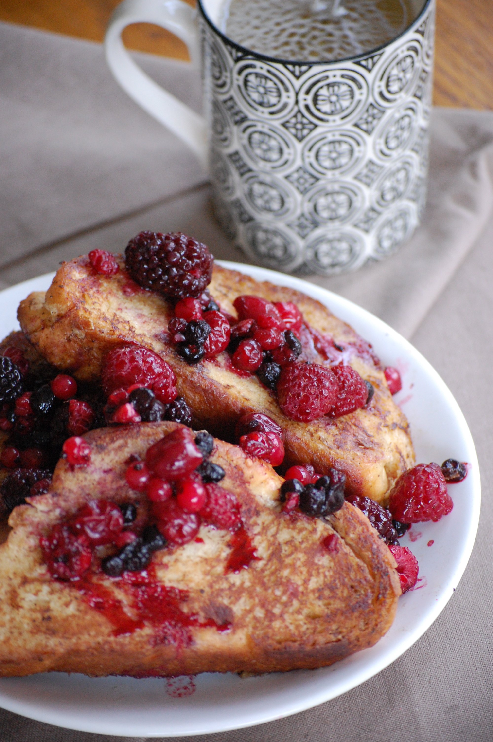 DSC_0555Le pain perdu, c’est le goûter de notre enfance que nos grands-mères nous faisaient les après-midi (enfin pour moi en tout cas !). Régulièrement, je croisais ces délicieux « french toast » (le pain perdu chez les anglo-saxons) sur les blogs ou sur Pinterest, et je ne pouvais m’empêcher de saliver devant ces délicieuses tranches de brioches légèrement dorées, agrémentées de fruits rouges, et nappées joyeusement de sirop d’érable…. De quoi me faire saliver pour la journée. L’autre jour je me suis dit qu’il était temps d’arrêter de saliver et qu’il fallait passer à l’action !