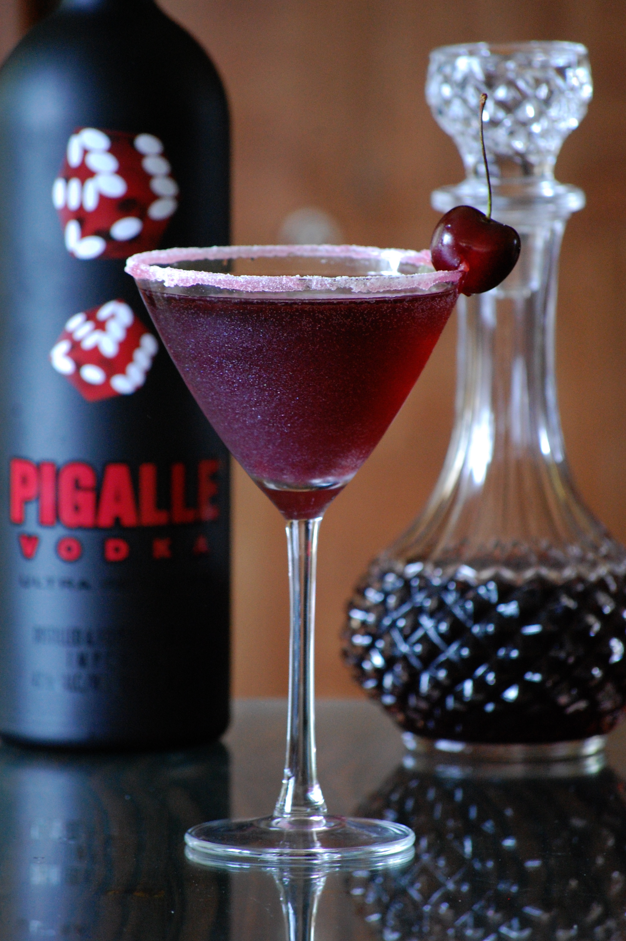 Dans un shaker rempli de glaçons, ajoutez le sirop, la vodka, le jus d’1/2 citron et le jus de raisin. Shakez puis versez dans un verre à cocktail au 3/4. Complétez en suite avec de l’eau pétillante. Décorez avec une cerise noire. Et voilà !