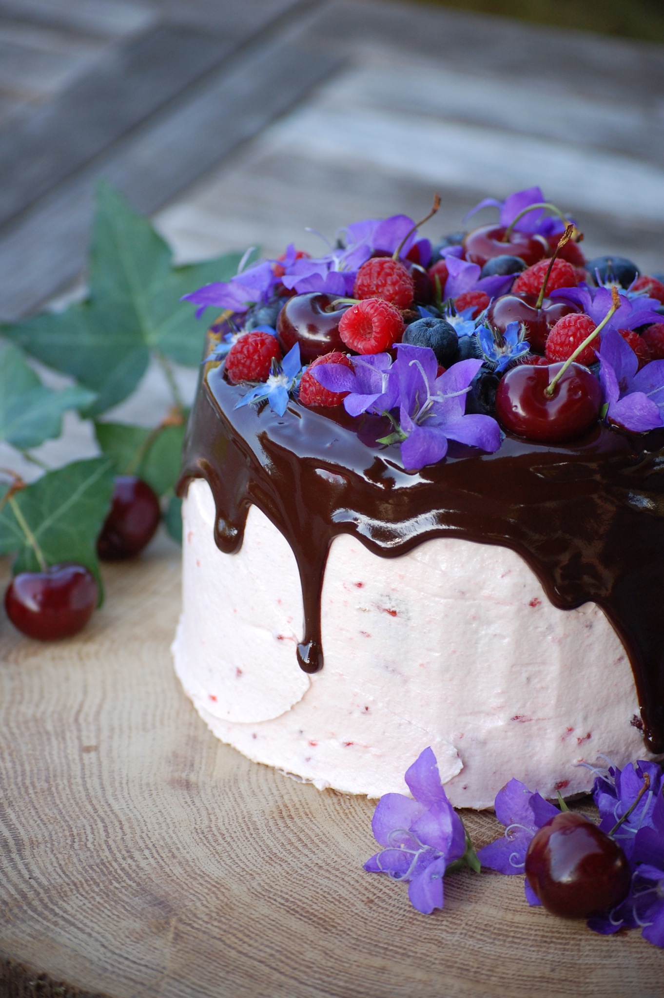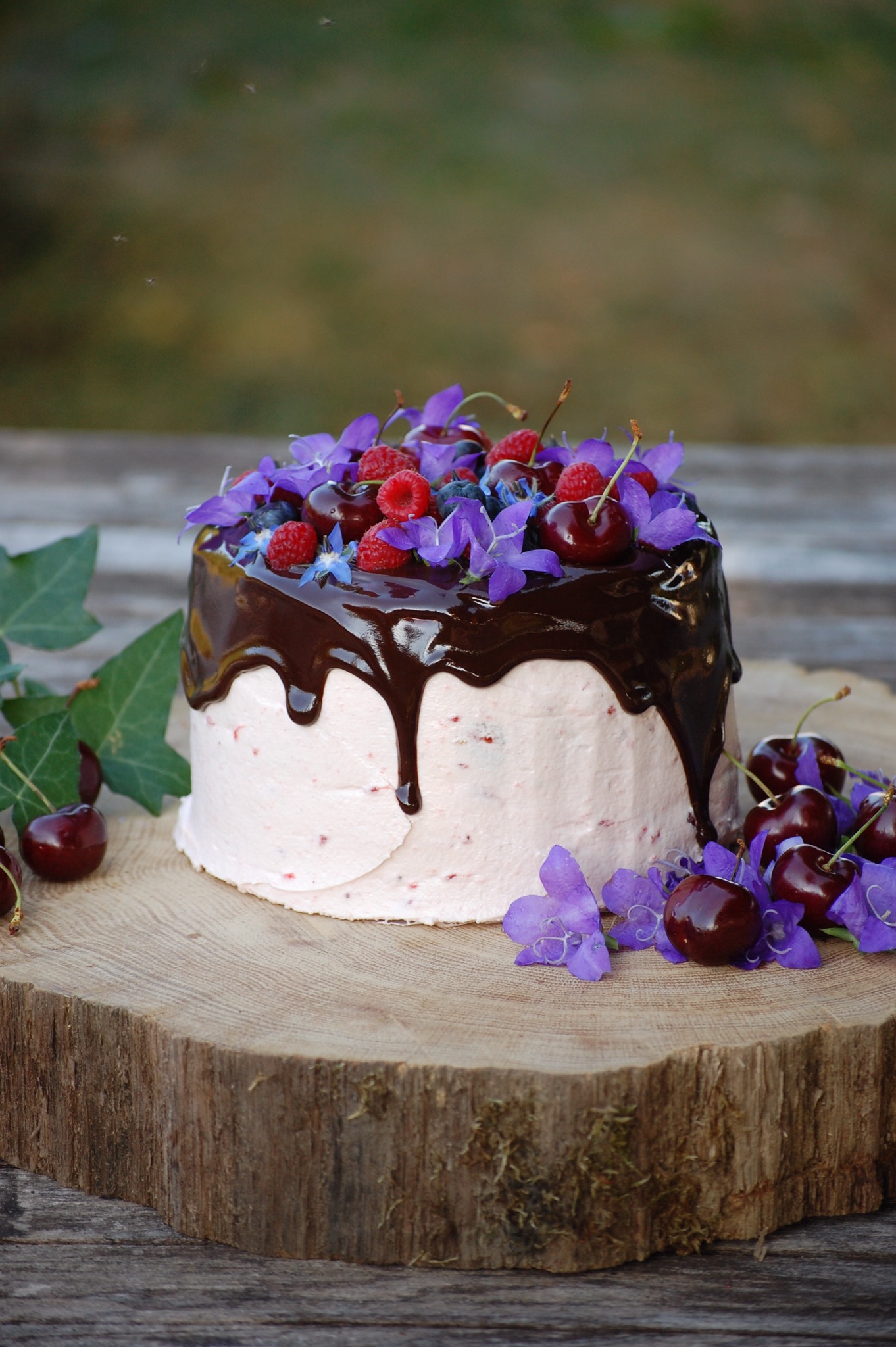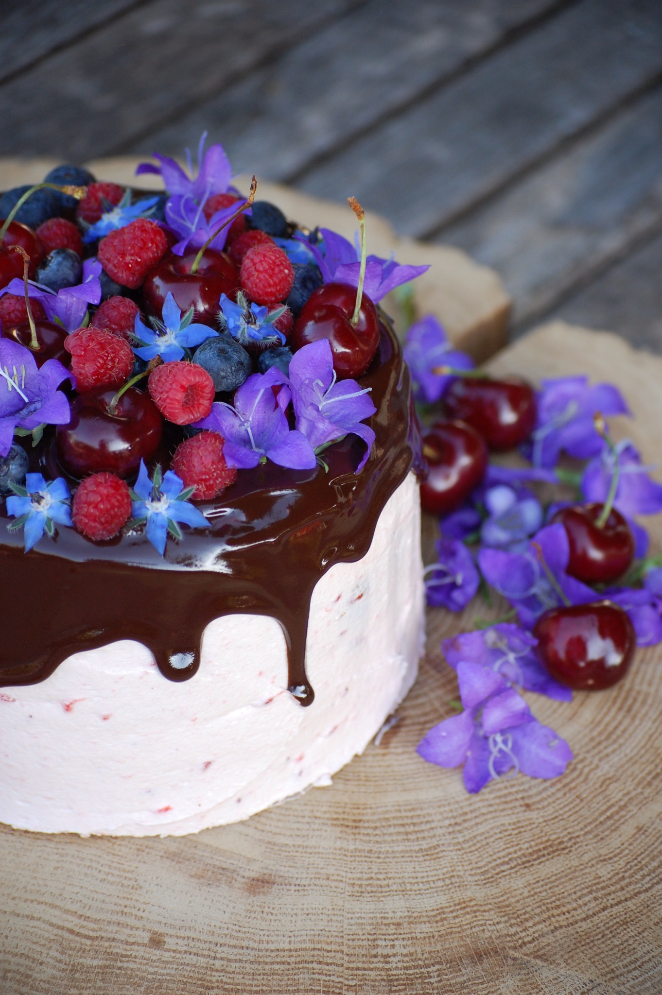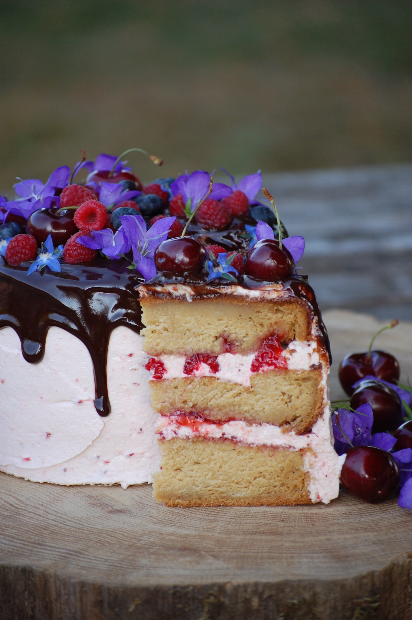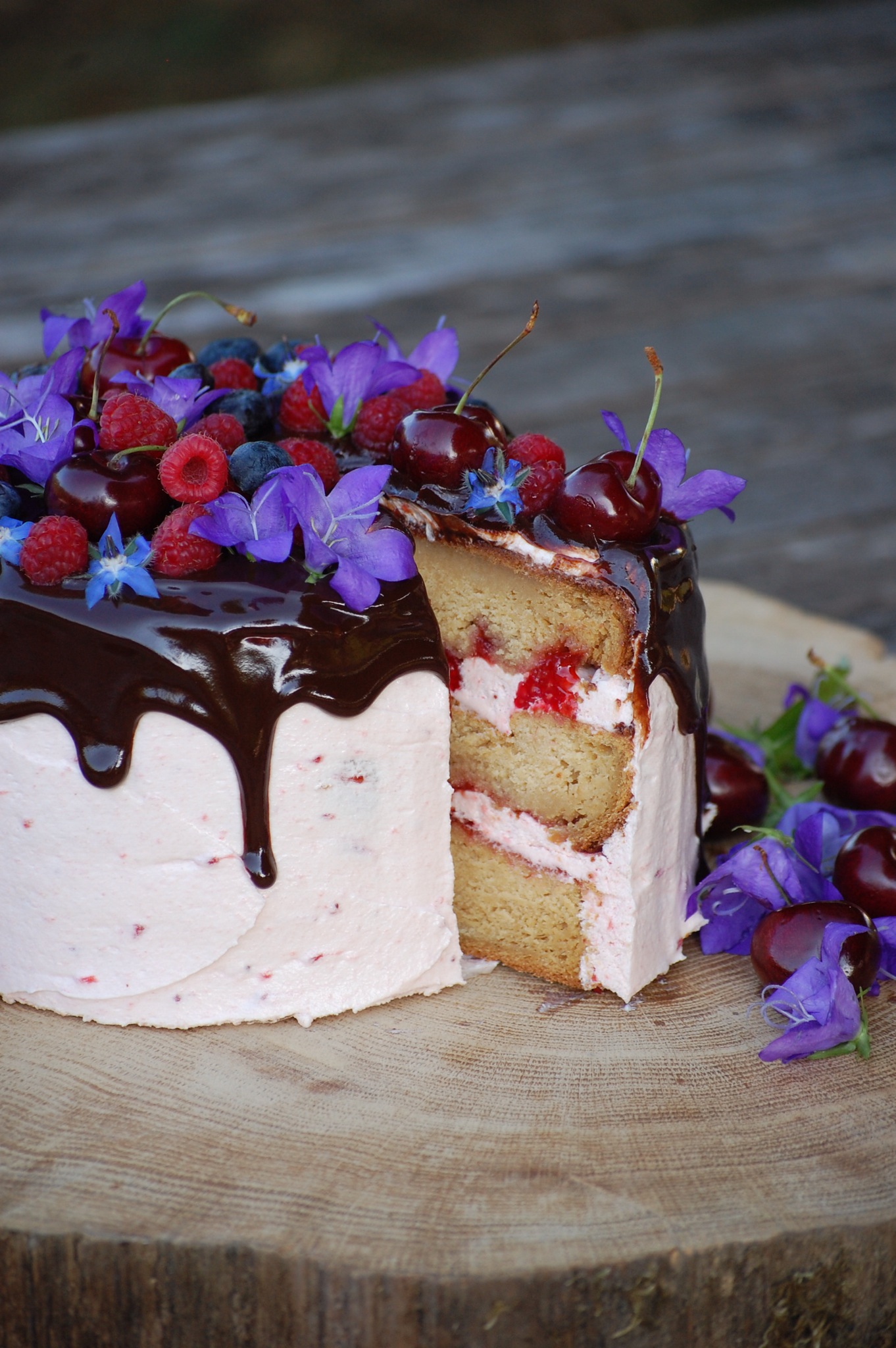C’est pour cela qu’aujourd’hui, je suis super contente de vous présenter ce qui est d’après moi mon plus beau gateau à étages. J’adore la tendance actuelle qui mêle gâteaux et fleur naturelle. Je suis assez contente du résultat et, en plus d’un visuel satisfaisant, le goût y était vraiment ! Un biscuit ultra vanillé, une butter cream à la confiture de fraises, des fruits frais, et une ganache gourmande au chocolat. J’adore son côté champêtre !