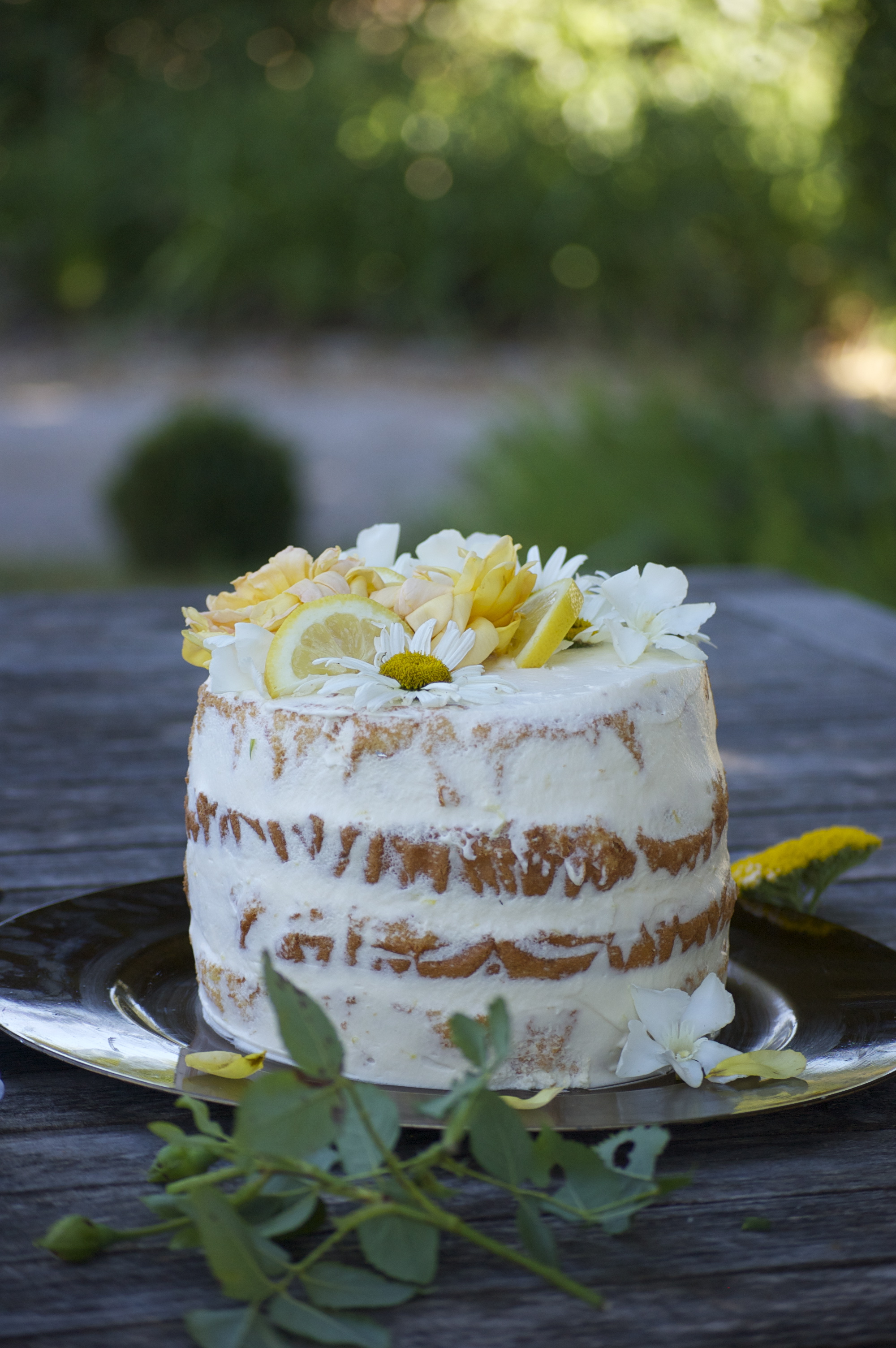 J’ai placé ma base de génoise sur un plateau de service : déposez en suite une bonne couche de chantilly. Déposez la deuxième couche de génoise, puis la chantilly. Répétez l’opération pour toutes les couches. Pour le décor, j’ai mis un peu de chantilly sur le dessus du gâteau et j’ai fait tomber l’excédent sur les côtés. J’ai en suite très légèrement unifié pour avoir ce côté ‘naked’. Pour la déco, j’ai encore une fois craquer pour des fleurs du jardin ! Et le tour est joué ! Conservez bien au frais avant la dégustation !