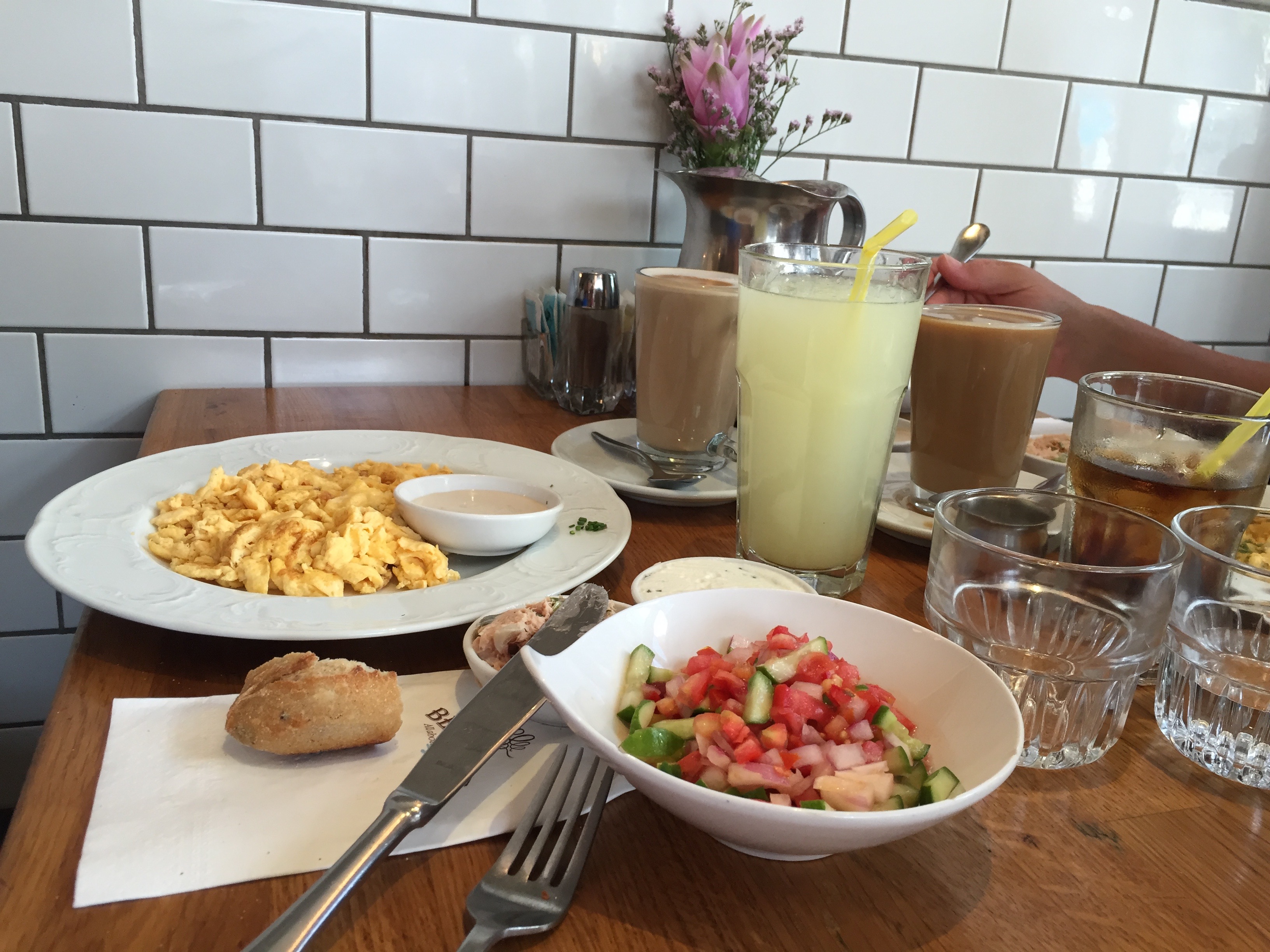 –Benedict’s, dans le quartier Rothschild qui propose différents petits dejs : végétarien, à l’israélienne, à l’anglaise… Un peu cher mais super copieux.
