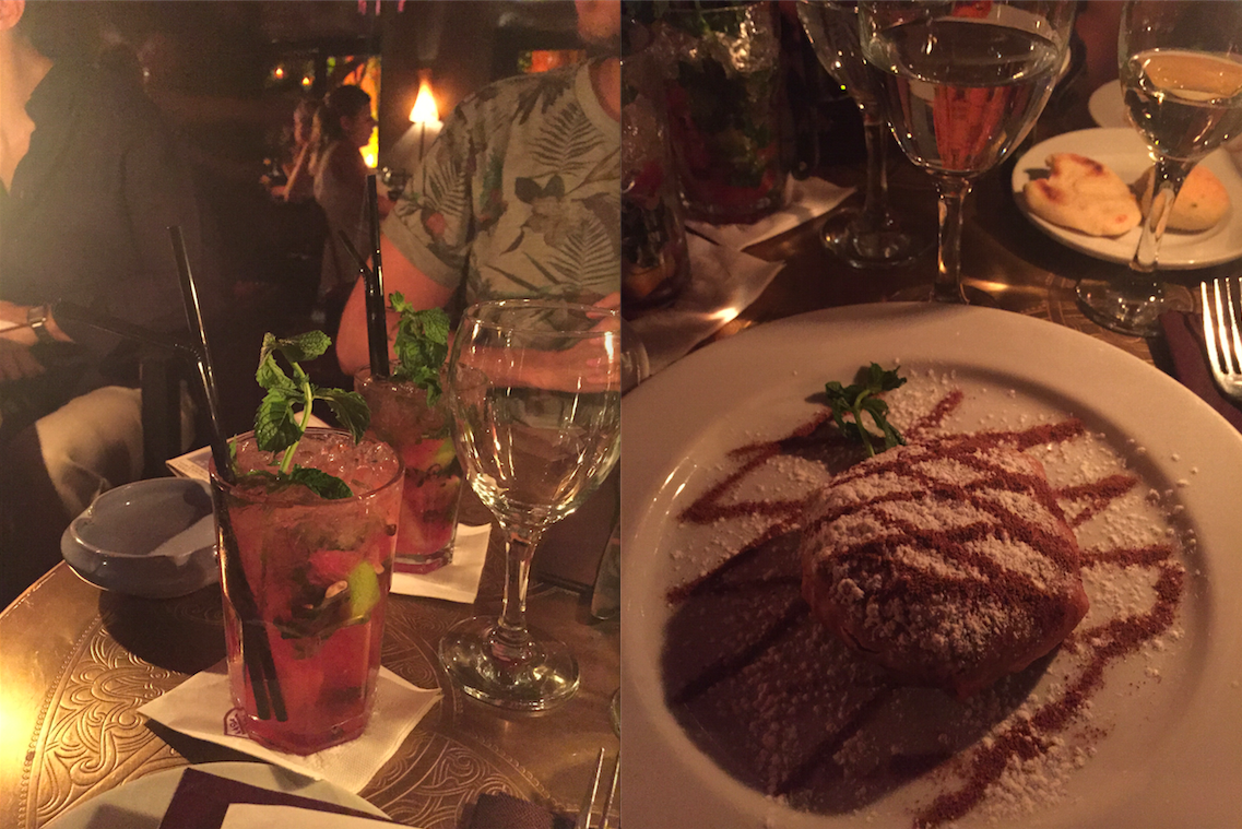 Pendant le repas, groupe en live et puis…les danseuses ! Un show incroyable, elles vous font danser avec elles. On a été conquis. On est monté au bar lounge à l’étage pour entendre jouer un nouveau groupe live avec un cocktail et un dessert. La carte de cocktail était super attrayante : j’ai testé le Bellini et mon compagnon a pris un cocktail au basilic. Bluffant et délicieux. Et mention spéciale au fondant au caramel qui n’était pas du tout sucré/écœurant.