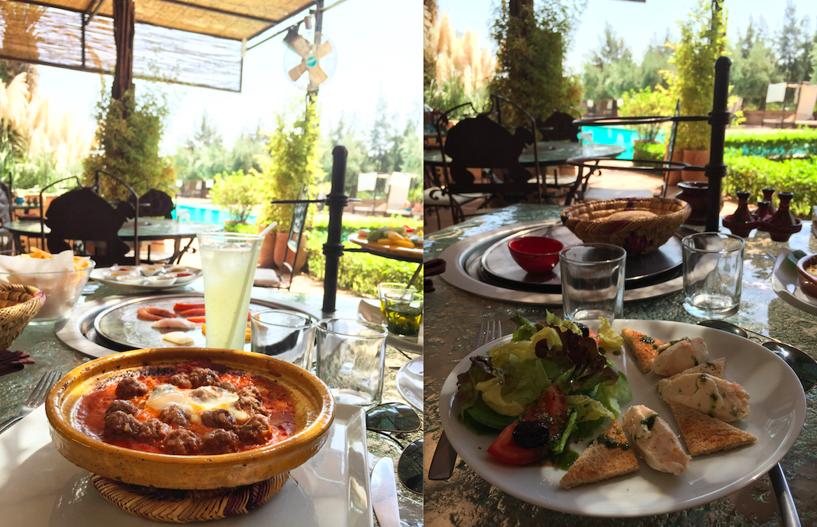 IMG_6419Deuxième formule piscine-déjeuner que nous avons testé : ne vous fiez pas à son nom un peu enfantin (le chauffeur de taxi nous a dit qu’il pensait que son nom venait de toutes les bosses que l’on rencontre sur le chemin) Manzil La Tortue est un endroit paradisiaque, il n’y qu’a jeter un oeil au photo. A l’ombre des 118 oliviers de la propriété (dont on déguste l’huile d’olives maison), des cigales qui chantent : pas un bruit ne vient troubler votre tranquillité et le cadre est sublime. La piscine est immense : vous avez le choix entre transats dans l’herbe ou lits au bord de la piscine. Fouad, le manager, vient régulièrement s’assurer que tout va bien. Le personnel est discret mais agréable. Nous nous sommes véritablement régalés : en entrée brandade de saumon ultra frais et un gratin de fruits de mers pour mon chéri (« suuuuupeeeer bon » dit-il). Pour le plat, j’ai goûter leur tajine de keftas et mon chéri s’est tenté aux fruits de mer et au poisson à la plancha : et comme vous pouvez le voir, vous faites votre propre plancha. J’en connais un qui a vraiment kiffé.