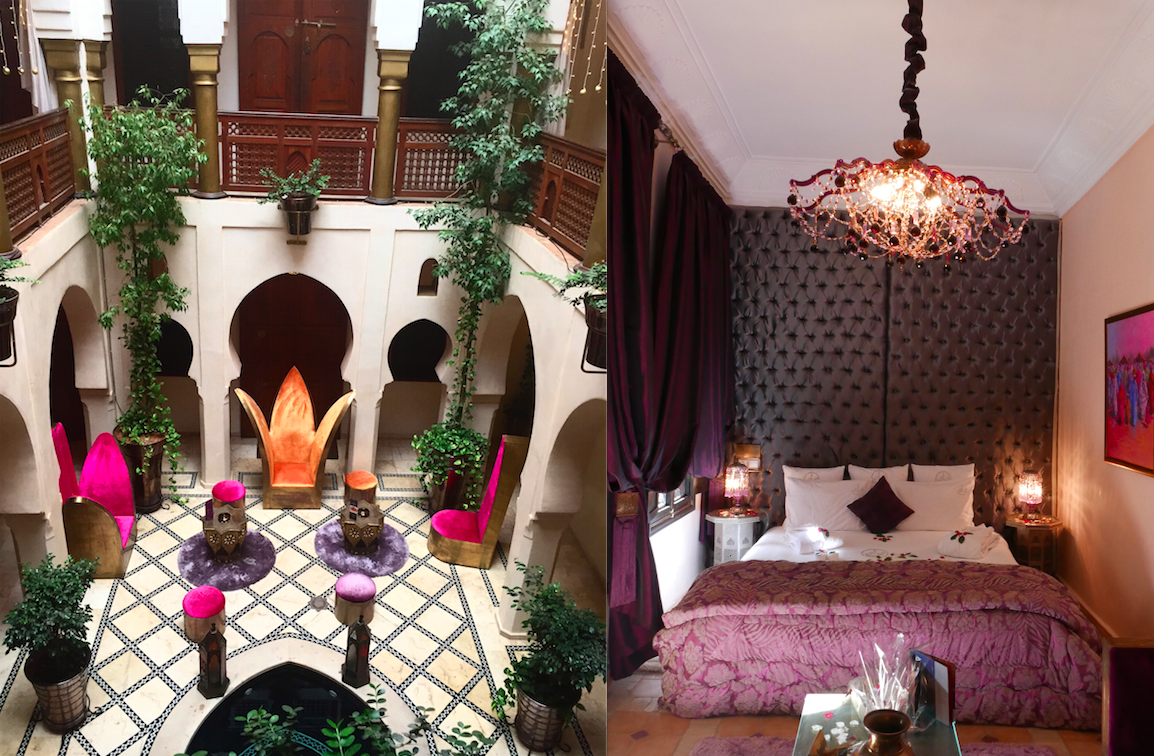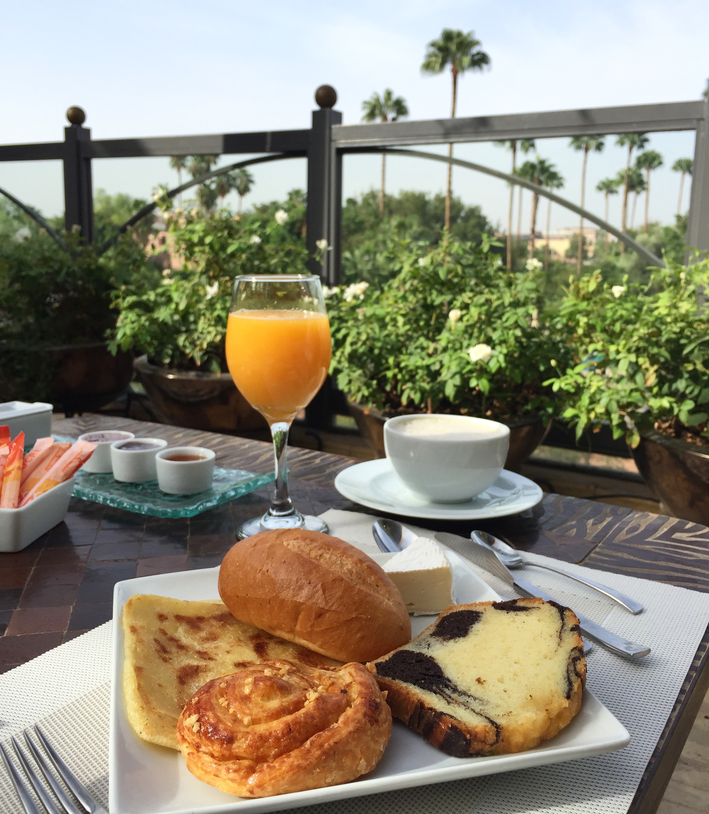 Avec mes parents, j’ai la chance de pouvoir séjourner au Sofitel qui est un des plus beaux hôtels que j’ai eu l’occasion de faire ! Cette année avec mon chéri, puisqu’on y allait surtout pour lui faire découvrir la ville (alors qu’au Sofitel c’est détente détente !), on a décidé de prendre quelque chose de plus intimiste, et j’avais très envie de tester l’expérience des riads. Enorme coup de coeur pour le Riad Wow : il s’agit d’un 5 étoiles et nous avons été émerveillés. Je pense que les photos parlent d’elles même ! Le petit patio était incroyable, la chambre digne d’une princesse… Le petit déjeuner était compris : pas le meilleur que j’ai eu l’occasion de manger, mais le fait de le déguster sur un roof top était génial !