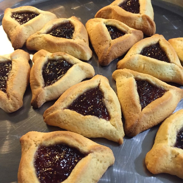 J’ai bien évidemment réalisé des oreilles d’aman, en testant une super recette parve de ma copine Rebecca ; des montecaos ; des brioches au chocolat ; des muffins citron pavot et des cigares aux amandes. Le tout bien évidemment parve !