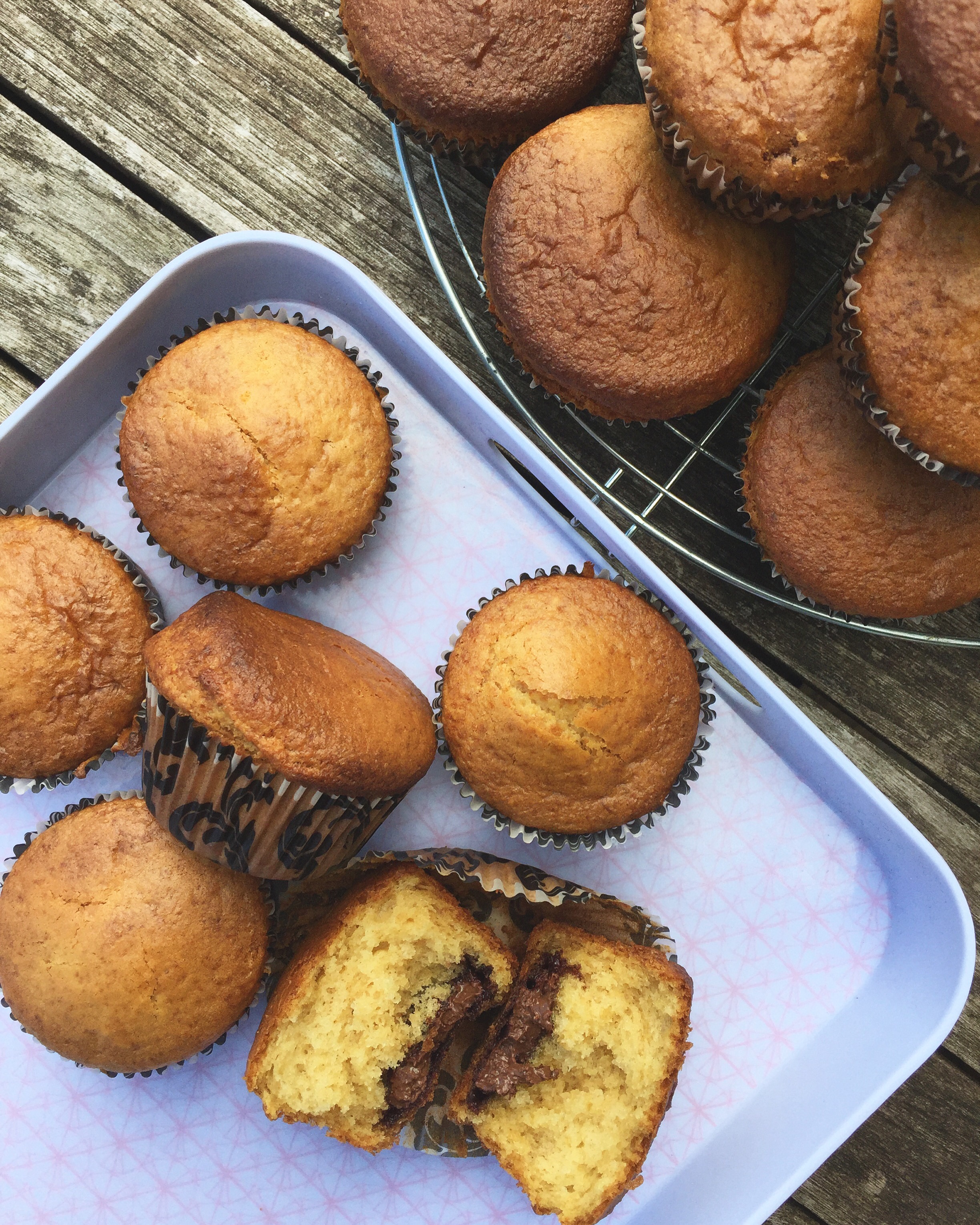 J’ai déjà testé plusieurs fois les muffins aux nutella mais à chaque fois le coeur nutella se retrouve au fond… Idem avec des pépites de chocolat !
