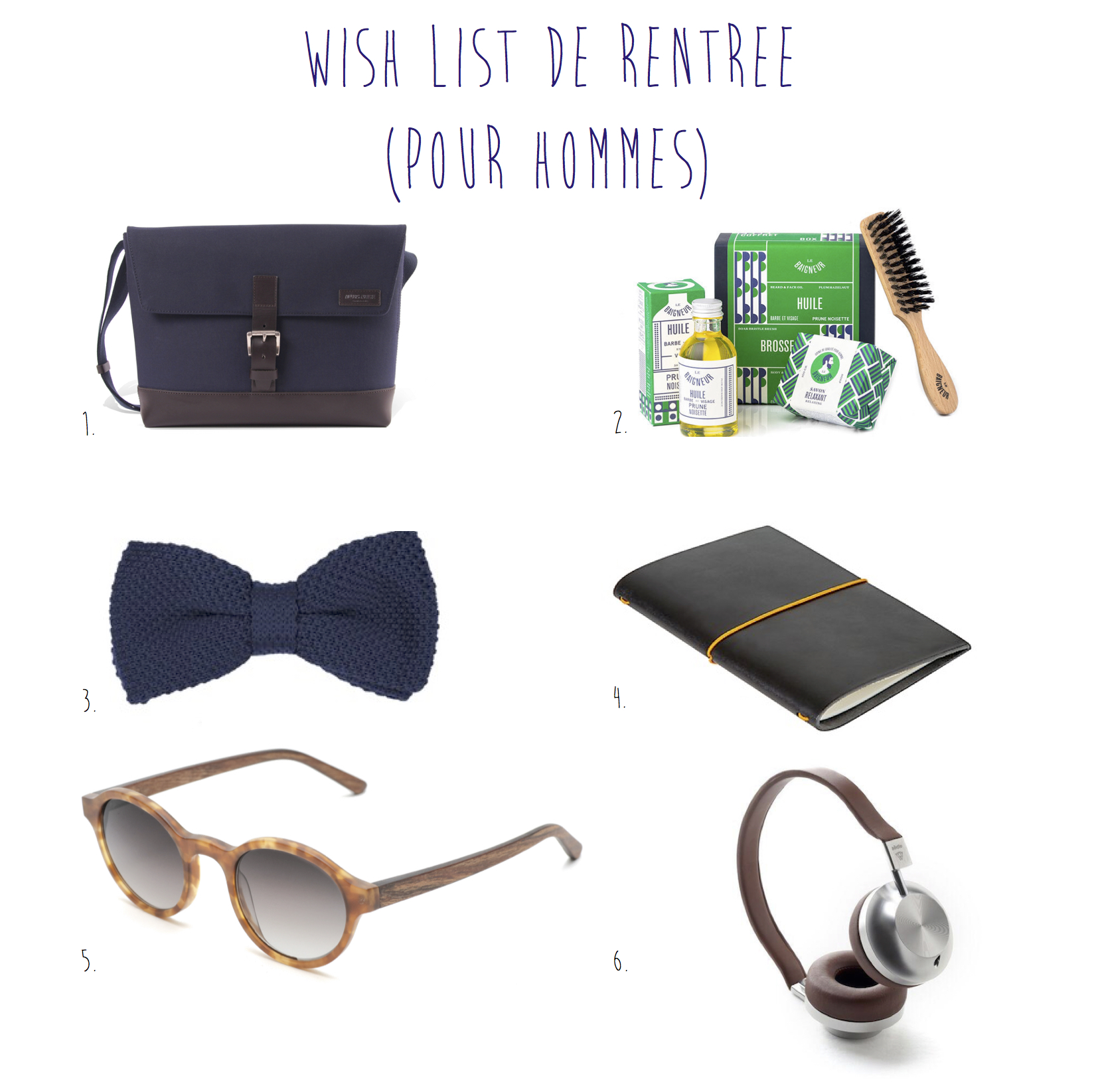 Et voici ma wish list pour accompagner votre chemise et vous donner des idées de cadeaux pour les messieurs.
