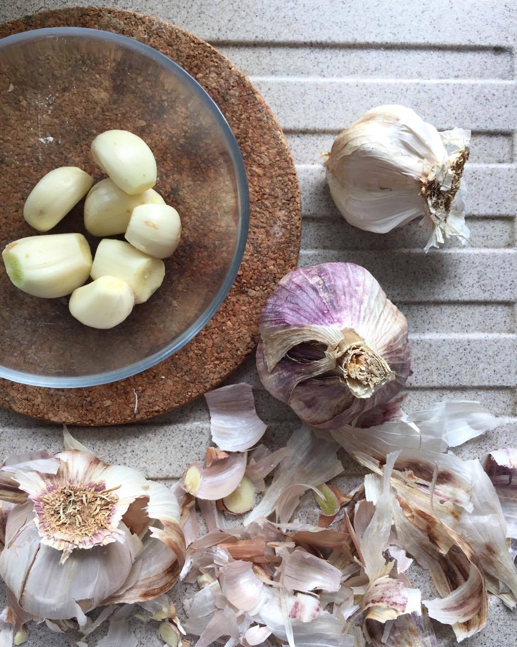 Pendant ce temps, préparer le garniture. Faites fondre le beurre à feu doux ou dans le micro ondes (surveillez bien, cela explose facilement…). Ajoutez en suite vos gousses d’ail, le persil et le parmesan.
