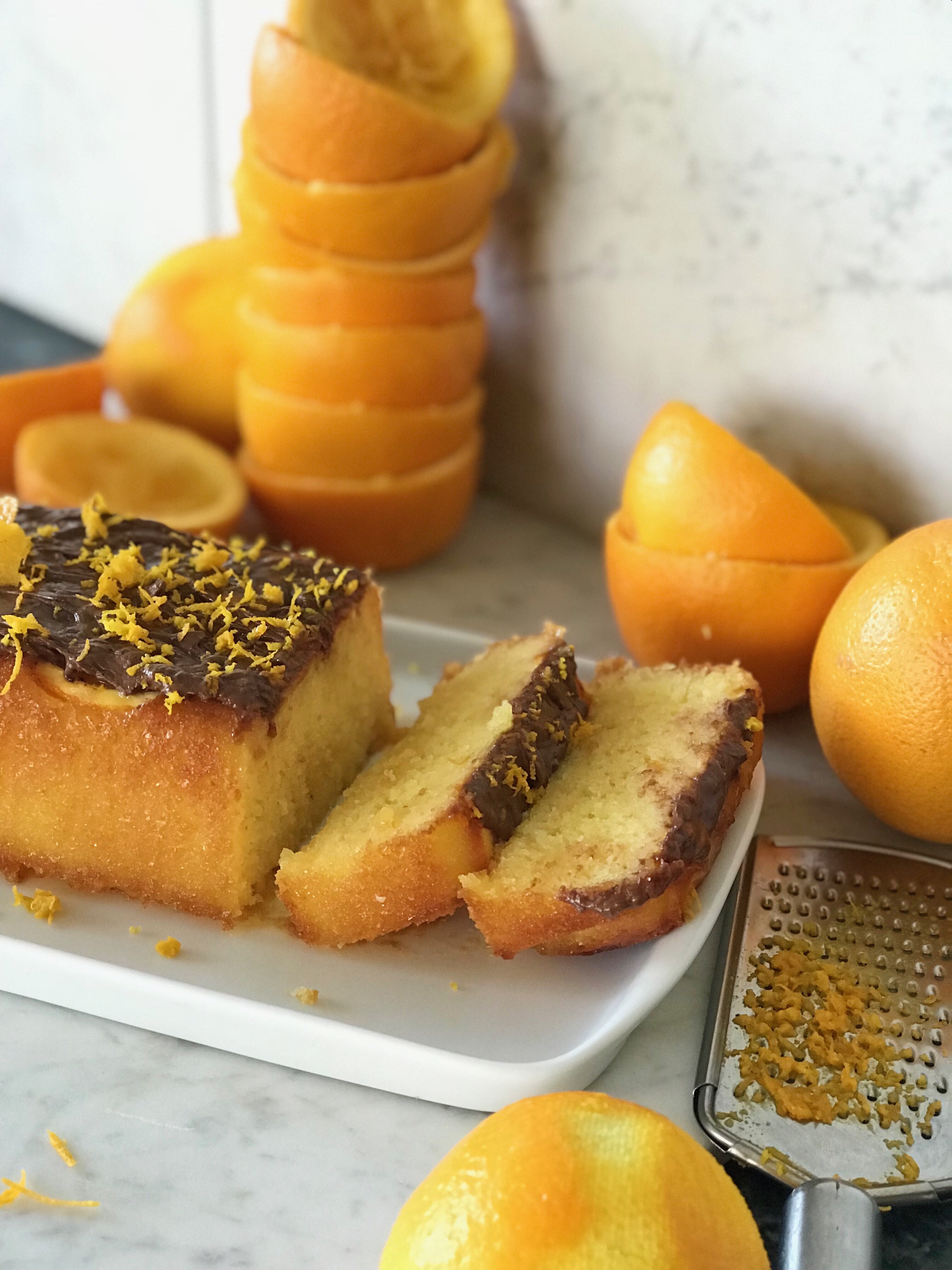 J’avais posté cette recette il y a déjà plusieurs années et je n’ai pas résisté à vous la re-poster un peu plus actualisée, avec des proportions un peu réajustées. J’espère que cela vous plaira. En plus, je trouve que rien ne vaut l’odeur de l’orange à l’approche de l’hiver. Le format cake est très convivial. Vous pouvez faire fondre du chocolat noir et mettre quelques zestes sur le dessus.