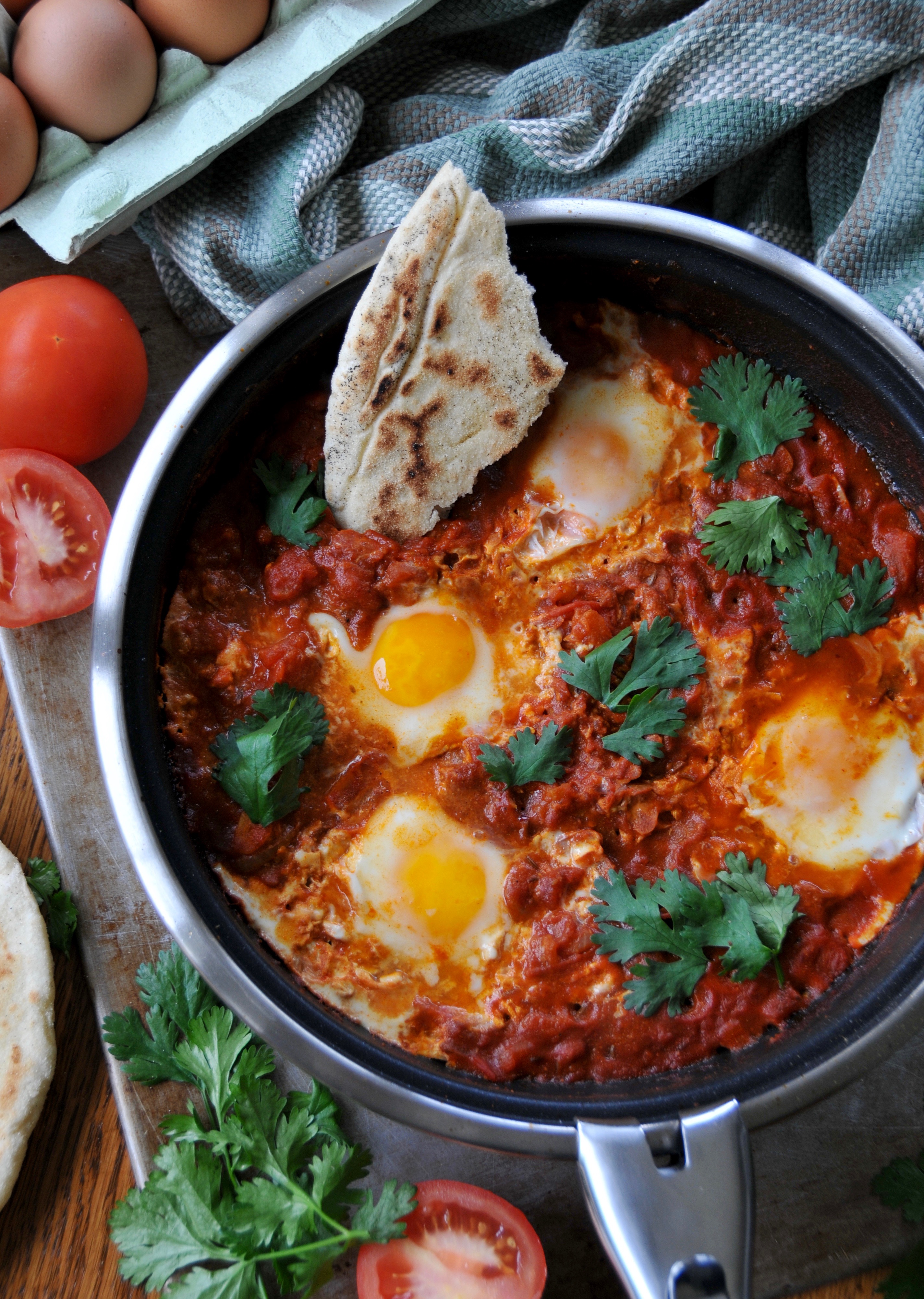 Shoushouka, shakshuka, shouk…. autant de noms que de recettes différentes pour cette spécialité orientale dont l’origine est (comme toujours) revendiquée par plus d’un pays 😉 ! C’est la recette « joker » de la famille quand on ne sait pas quoi manger. Rapide, facile à faire et pleine de saveur, la shoushouka ravie tout le monde à la maison. Je poste souvent cette recette sur Instagram et vous me demandez souvent la recette. Je n’ai pas la prétention de connaître LA recette officielle de la shoushouka, mais c’est celle de la famille.
