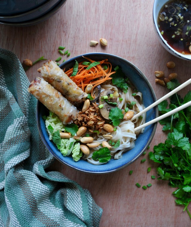 Alors oui, je sais, ça ne peut être un BoBun car par définition, « Bo » veut dire boeuf en vietnamien donc un bobun ne peut pas être végétarien… Bon franchement, on s’en fiche non ? L’idée est de vous proposer de retrouver l’esprit du bobun mais avec une alternative sans viande, et même vegan si vous choisissez bien vos nems.