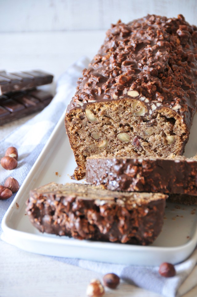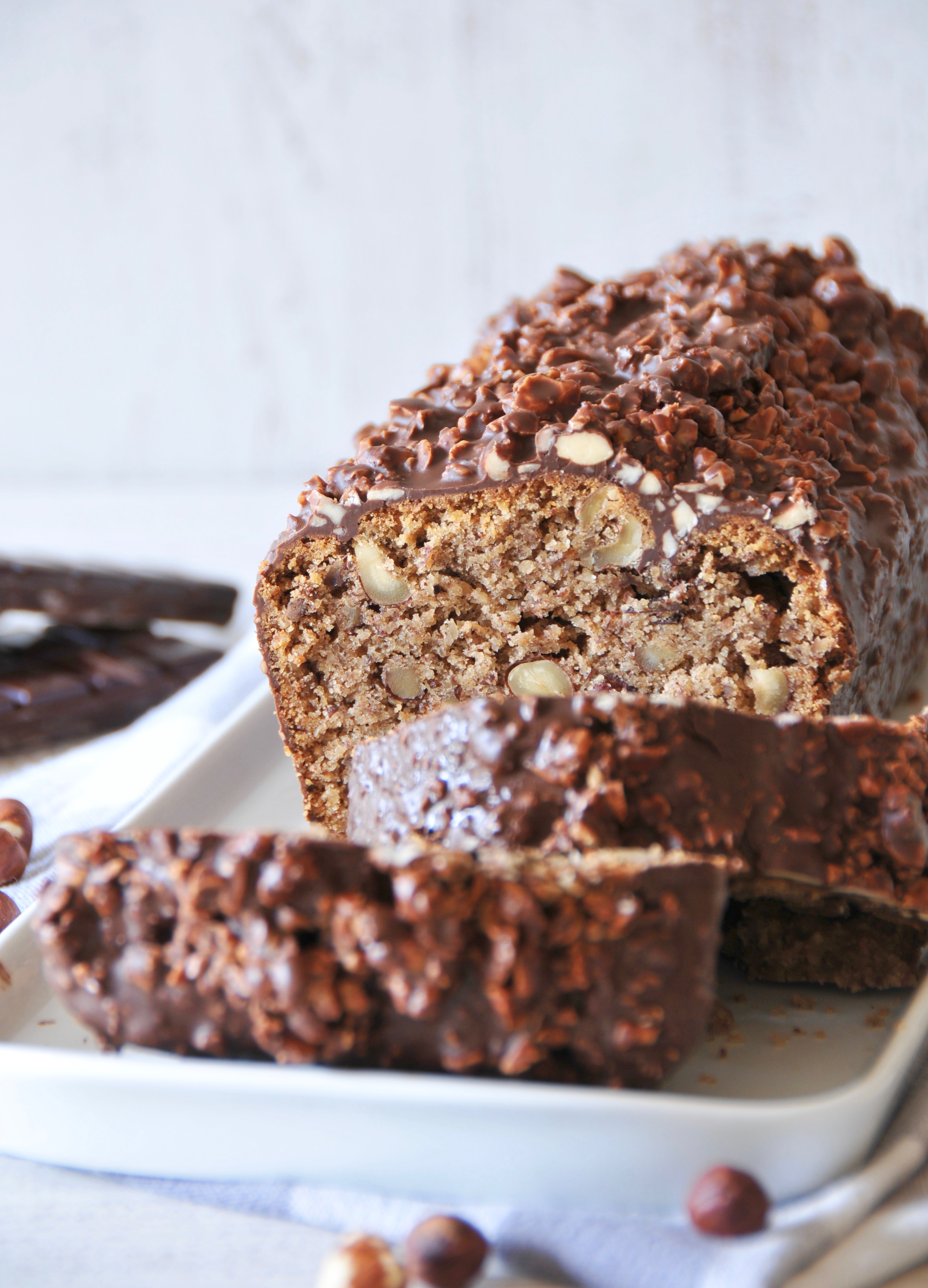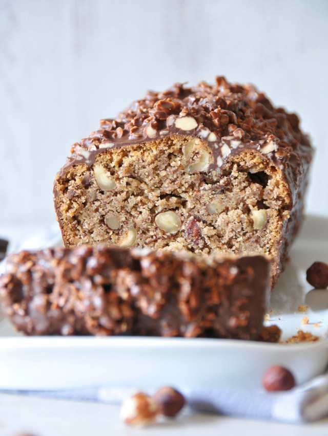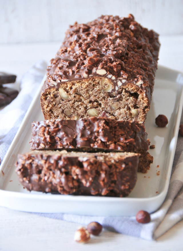 Ici, les noisettes et la poudre de noisettes sont torréfiées pour obtenir un gout de noisette bien prononcé. Ce cake est moelleux, compacte mais léger, avec des morceaux de noisettes croquantes au milieu et un enrobage chocolaté… Un délice, à accompagner avec un petit thé !